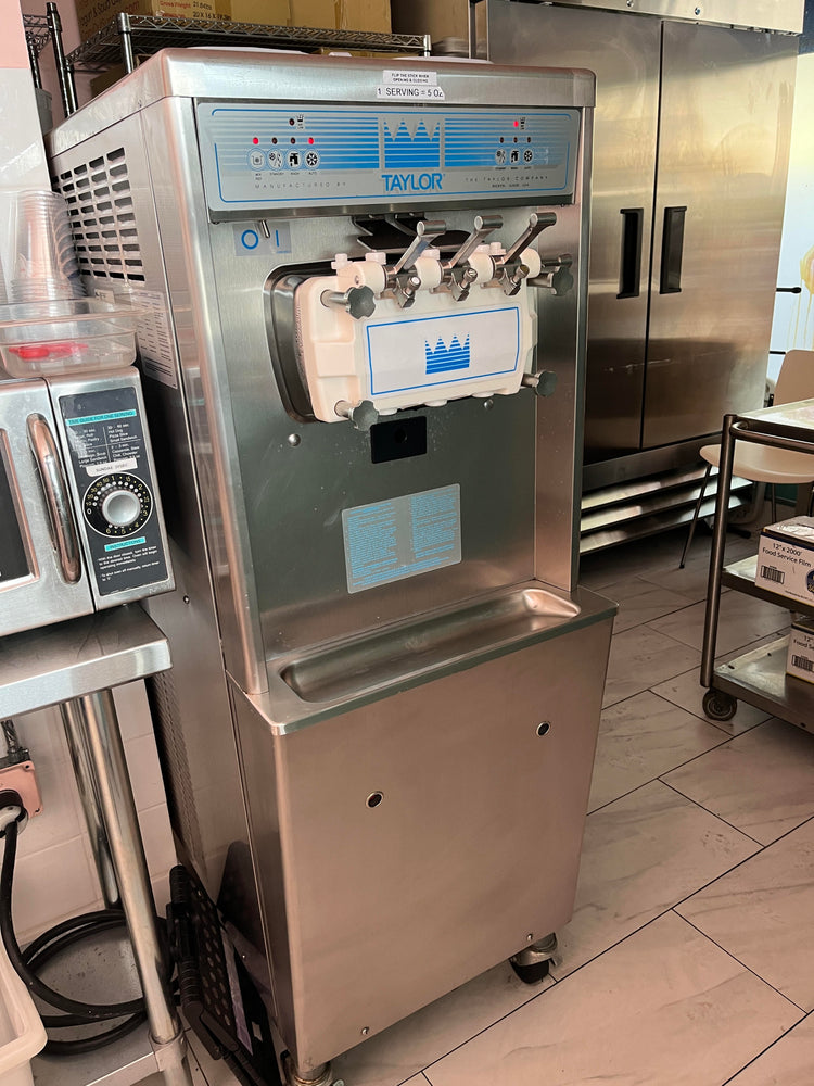 Excellent working condition made in 2013 Taylor 794-27 in hard to find 1 phase air. Offer all the popular soft serve variations from low or non-fat ice creams to custards, yogurt and sorbet. Serve two separate soft serve flavors, or an equal combination of both in a twist.