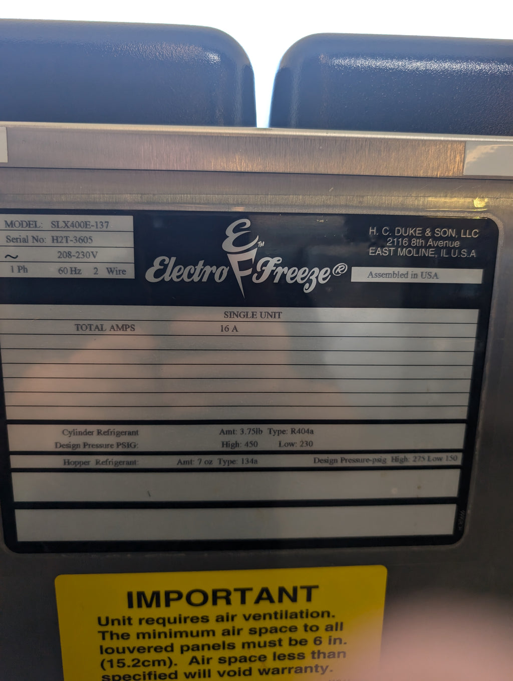 2014 Electro Freeze SLX400E-137 1 phase water cooled