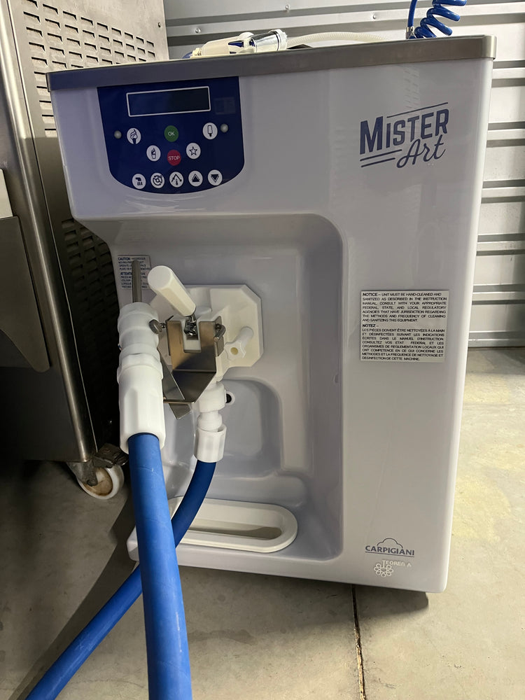 This 2017 Carpigiani Mister ART Single-Phase Air-cooled is a single flavor soft serve machine. It's an ideal machine for filling ice cream cakes, pastries, and premium ice cream pop molds. Can also make a soft serve cone.