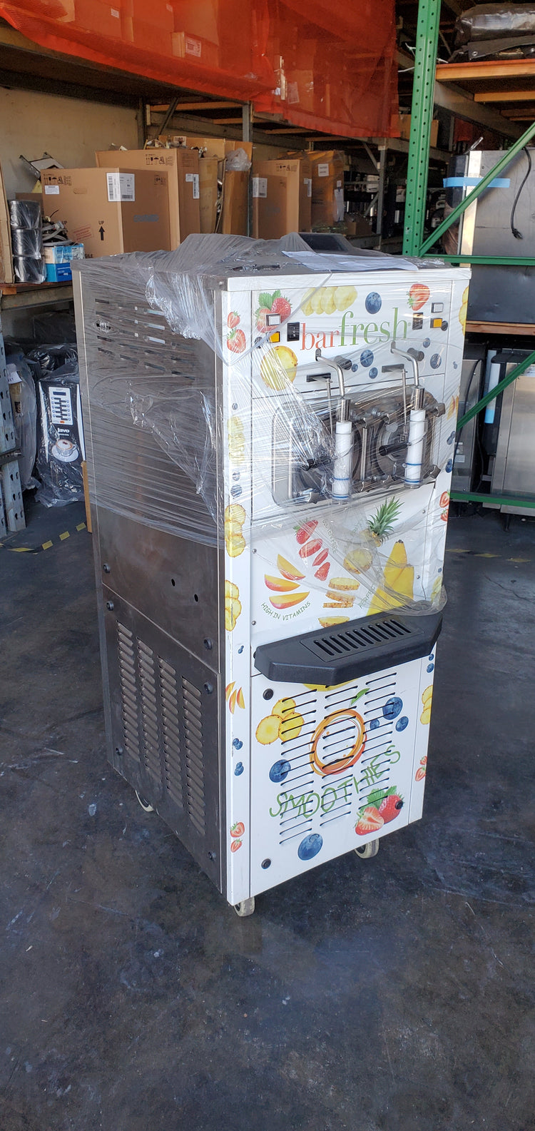 A high capacity dual flavor floor standing frozen beverage freezer.