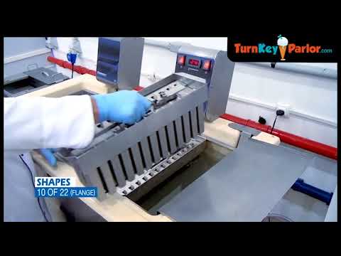 The Turbo 25 is a semi-automated machine designed for producing water-based popsicles (ex: gooseberry, pineapple, lemon, etc) as well as milk-based popsicles (ex: chocolate, vanilla, etc). It is a practical and fast machine, capable of producing 700-900 popsicles an hour! The Turbo 25 (air-cooled model) comes with 10 moulds of 28 cavities each.